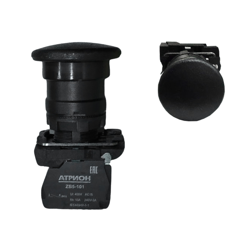 Кнопка LA37-B5C10KP, 1NO, 3A(240VAC), черная, грибовидная Ø40mm, без фиксации, IP66
