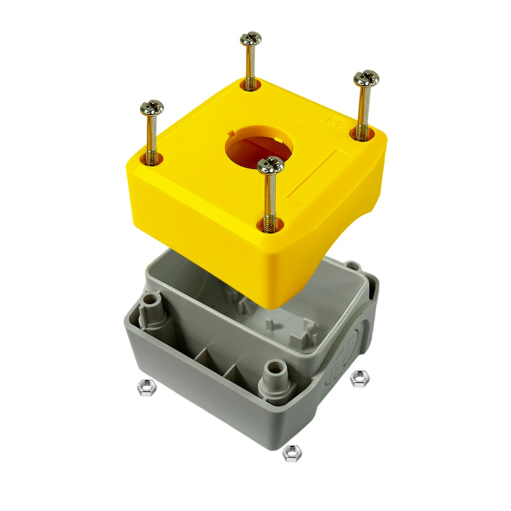 Корпус для поста кнопочного XAL-K01 от бренда Атрион Про предназначен для установки на плоскую поверхность и имеет высокие эксплуатационные характеристики, обеспечивая защиту от пыли и влаги благодаря степени защиты IP66. Модель выполнена из высококачественного ABS пластика, что гарантирует долгий срок службы. Верхняя часть корпуса окрашена в яркий желтый цвет, а основание – в светлом оттенке серого.