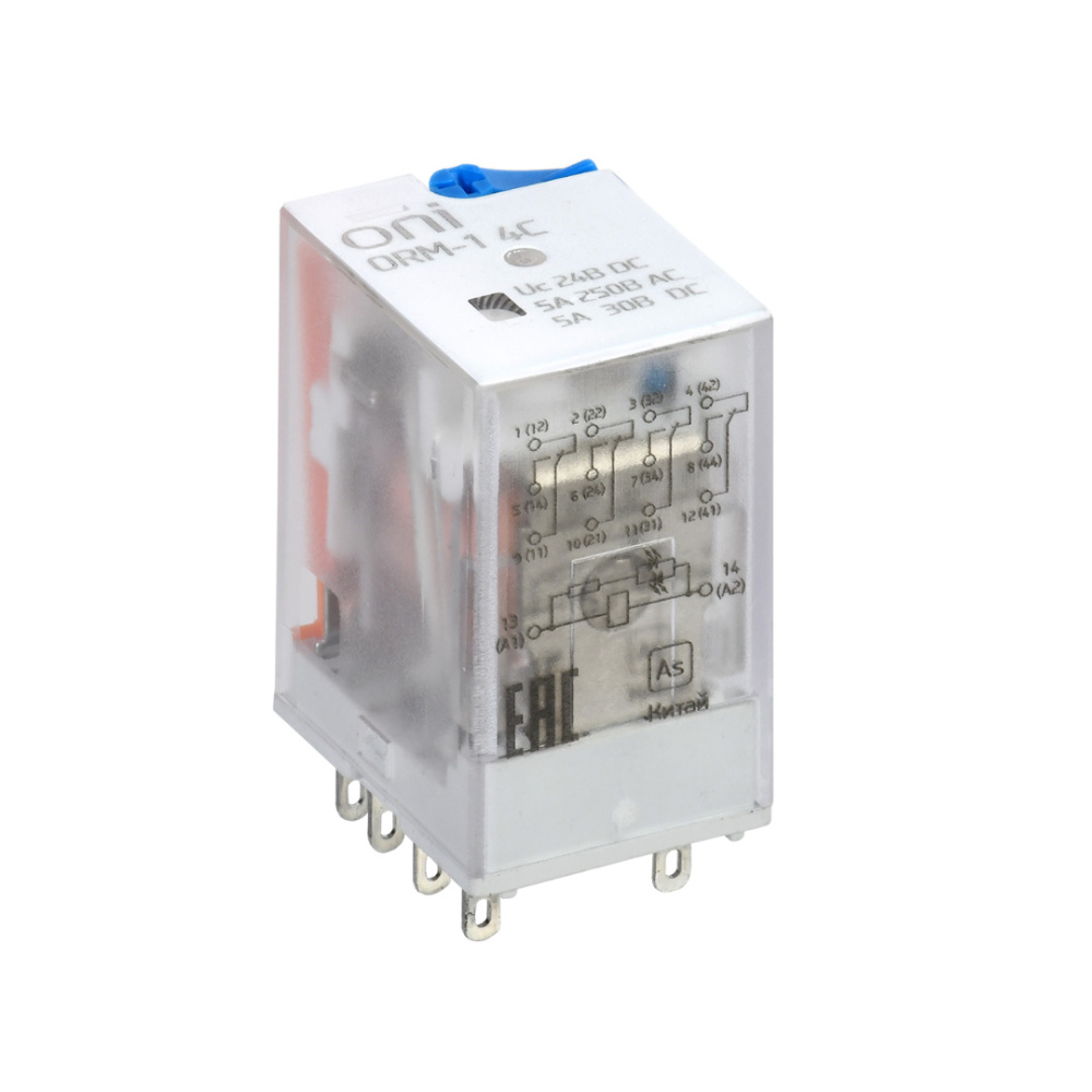 Миниатюрное реле ORM-1-4C-DC24V-L-B, 4CO, 5A(250VАС/30VDC), 24VDC, кнопка тест, LED