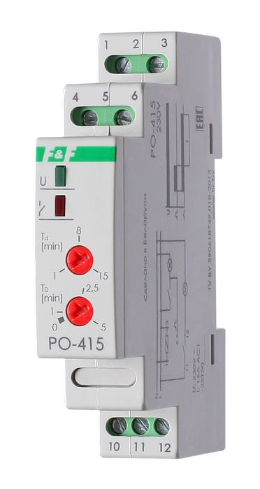 Реле времени PO-415 предназначено для поддержания работы устройства после размыкания управляющего контакта в течение установленного отрезка времени.